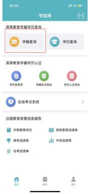 1.登录学信网APP,点击“学籍查询”,查看学籍学历信息